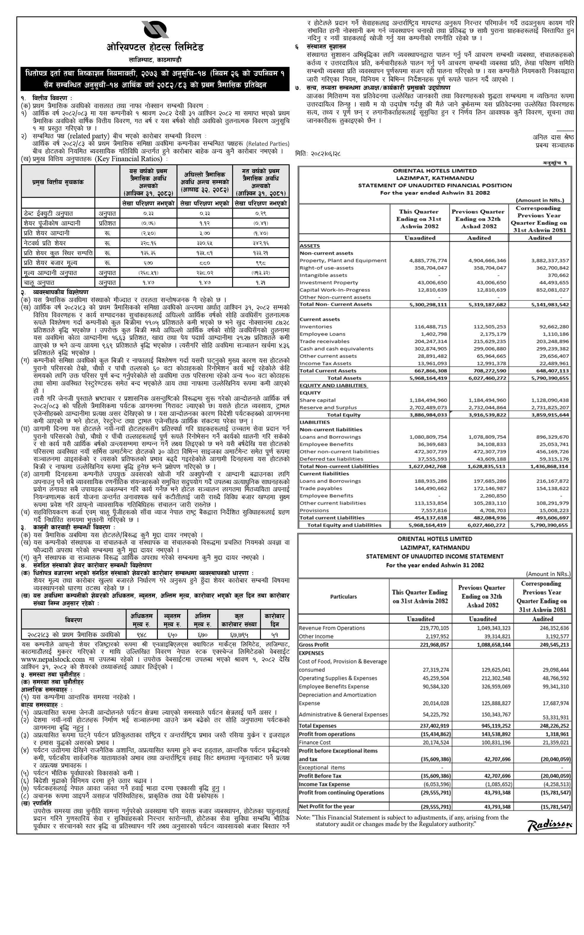 Quarterly Report 2082